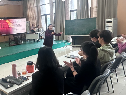 不同于传统讲座的单向输出,本次分享融入了多个趣味互动游戏。师生们在轻松愉悦的氛围中积极参与,在游戏体验中开拓创新思维,深刻感受音乐与戏剧交融的魅力。汪洁还结合精心准备的视频片段、幕后花絮,引导大家思考如何在教学与创作中激发感知力、表现力与创造力,让在场师生在沉浸式体验中领略艺术的力量,在互动探索中发现自身的创意潜能。