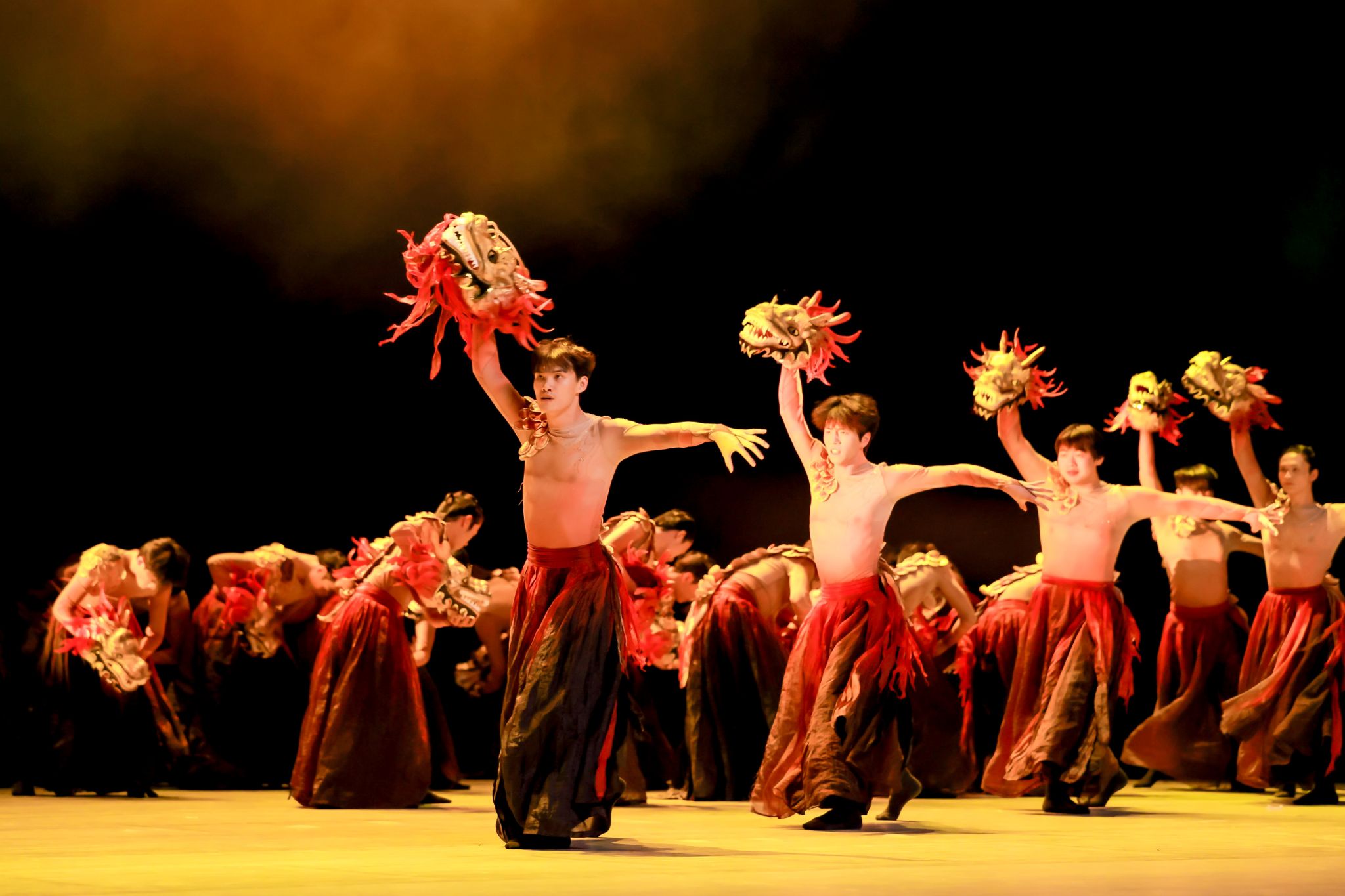 本场国家级艺术盛会汇聚全国40所顶尖院校近千名师生,代表了当前全国大中小学生艺术教育的最高水平。本届展演以“艺展风华,志铸秋实”为主题, 分“山河雅颂”“万象笙生”“潮启新程”三大篇章。《龙之子》作为第一篇章“山河雅颂”开篇之作,历经十年创作打磨而成,二十余名艺术学院舞蹈专业学生参演。演出前,为确保演出圆满呈现, 创作团队于11月9日至10日在台湖剧场完成集中排练,11日进行最终彩排后正式登台。